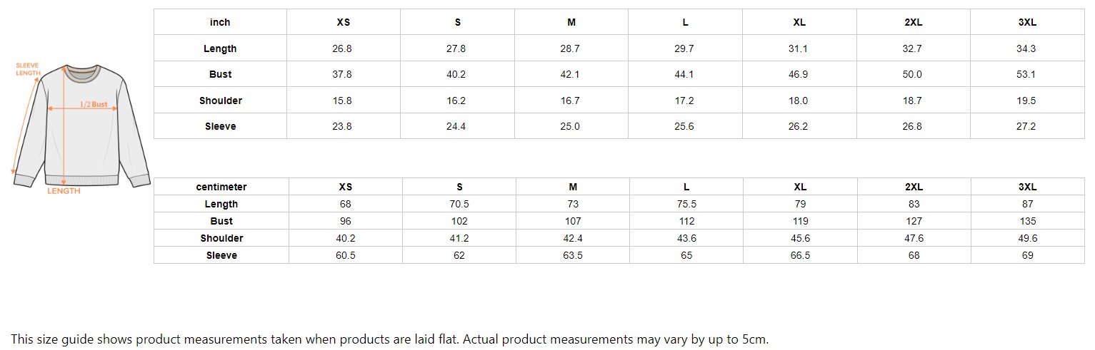 This size guide shows product measurements taken when products are laid flat. Actual product measurements may vary by up to 5cm.